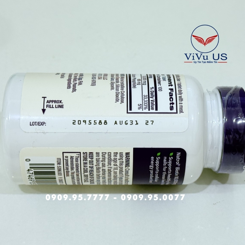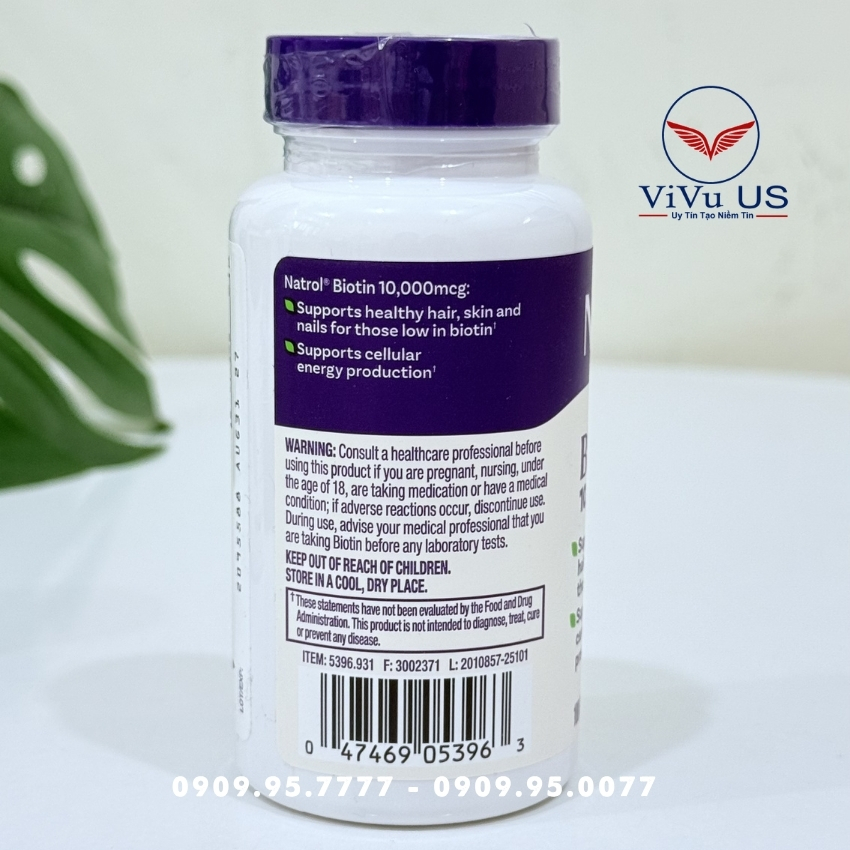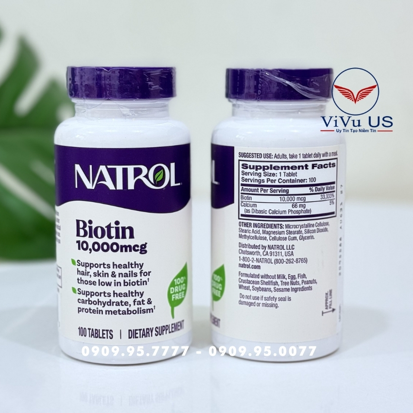 Tên sản phẩm : Natrol Biotin 10000mcg 100 viên của Mỹ