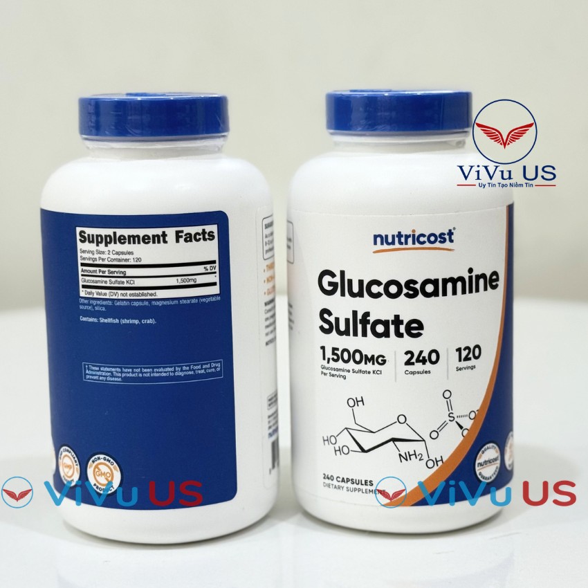 Viên uống Nutricost Glucosamine Sulfate 1500mg - Hỗ trợ xương khớp, giảm đau mỏi, tăng linh hoạt 240 viên chất lượng cao